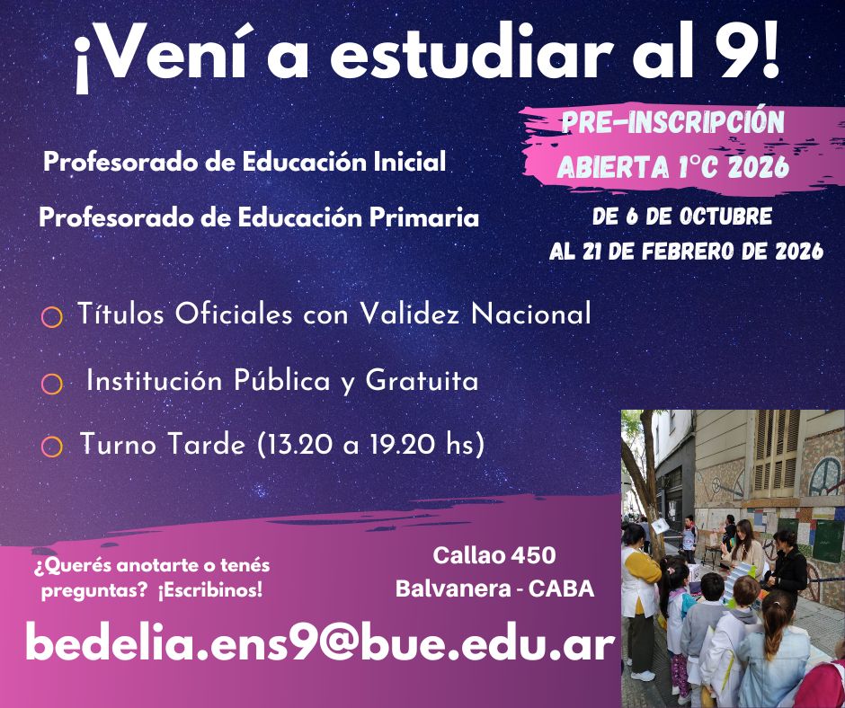 ATENCIÓN: LA PREINSCRIPCIÓN AL PROFESORADO PARA EL PRIMER CUATRIMESTRE 2026 ESTARÁ ABIERTA A PARTIR DEL 6 DE OCTUBRE AL 21 DE FEBRERO DE 2026